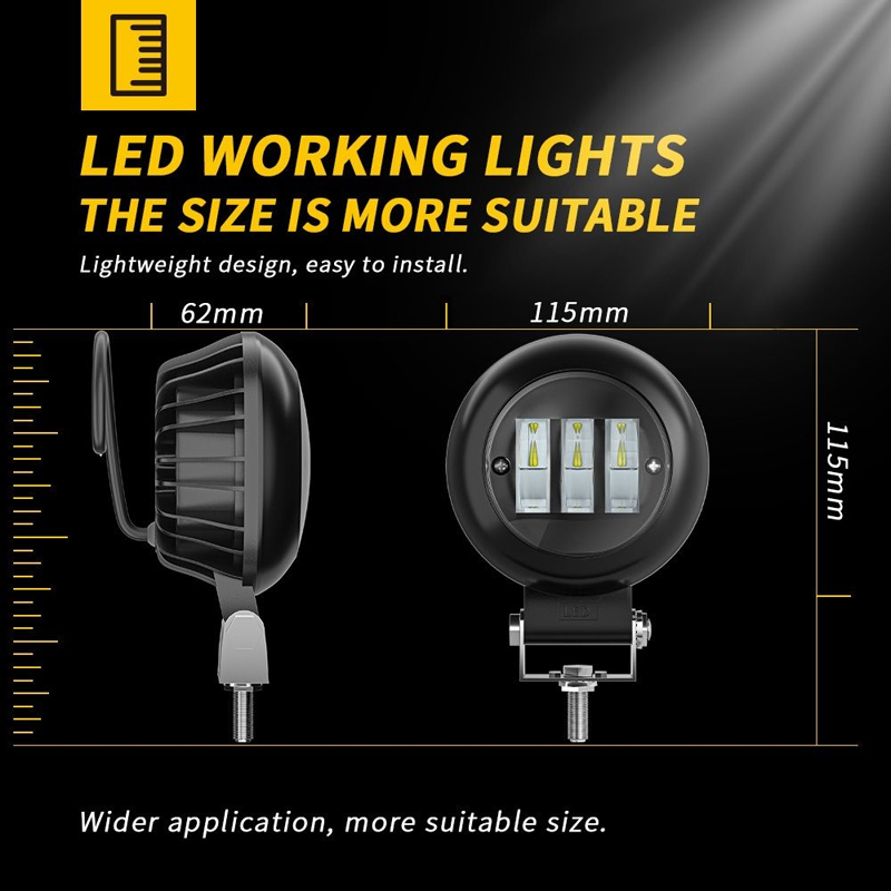 | Specifications Material:Aluminum+PC Voltage:9-80V LED Chips:CREE Number of LEDs:6 Color Temperature:6500K LifeSpan:30000H IP Rating:IP65 Light Type:Spot Light Color:White | Packaging Information Product Weight:435g Inner Box Size:140×120×70mm Outer Box Size:68×28×37cm Packing Type:Neutral color box Quantity Per Carton:50PCS |